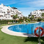 Sunset Golf Apartment Estepona med 2 sovrum, som ligger cirka 10 minuters bilresa från Selwo äventyrspark, har en terrass med en pool. Flygplatsen Malaga kan nås inom 59 minuters bilresa från den här 80 m² stora lägenheten.
